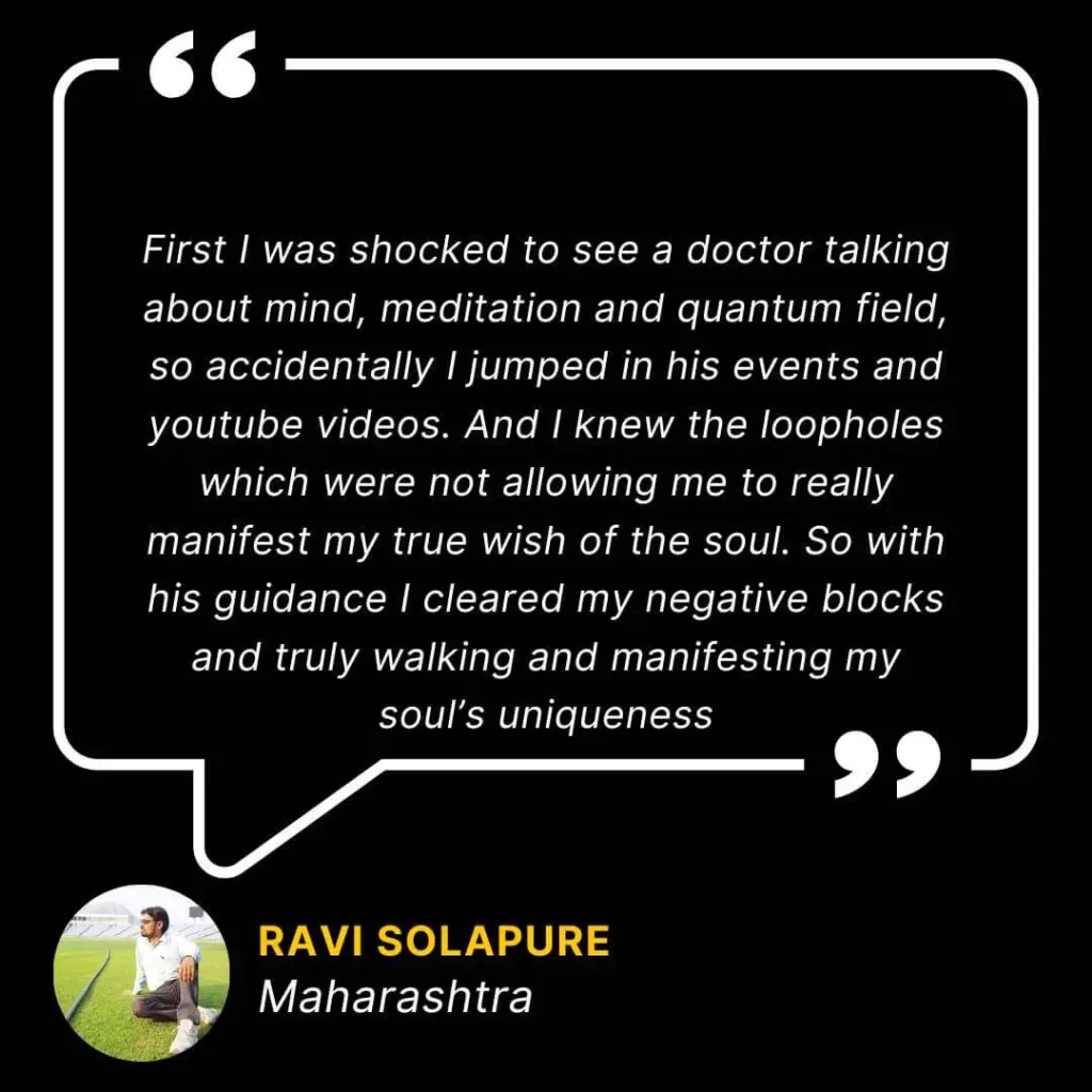 I have worked with great minds to learn medical science, neuroscience, Quantum physics etc. Also I stayed in many ashrams to deeply understand meditation, Mind and power of Consciousness . In my years of practice, I have realized that Our consciousness and Mind when used with Quantum fields can create miracles… Hence quantum physics and spiritual practices are more interconnected than we realize.